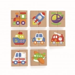 Magnetická dřevěná puzzle od značky Viga umožňuje dětem rozvíjet své logické myšlení a poznávat nové druhy dopravy. Puzzle se skládají z 8 různých obrázků, kde každý z nich představuje jiný dopravní prostředek.