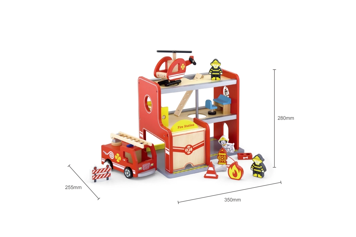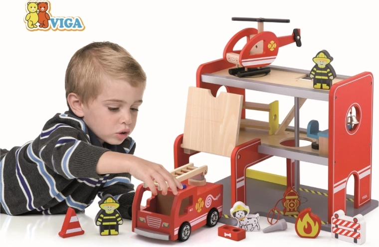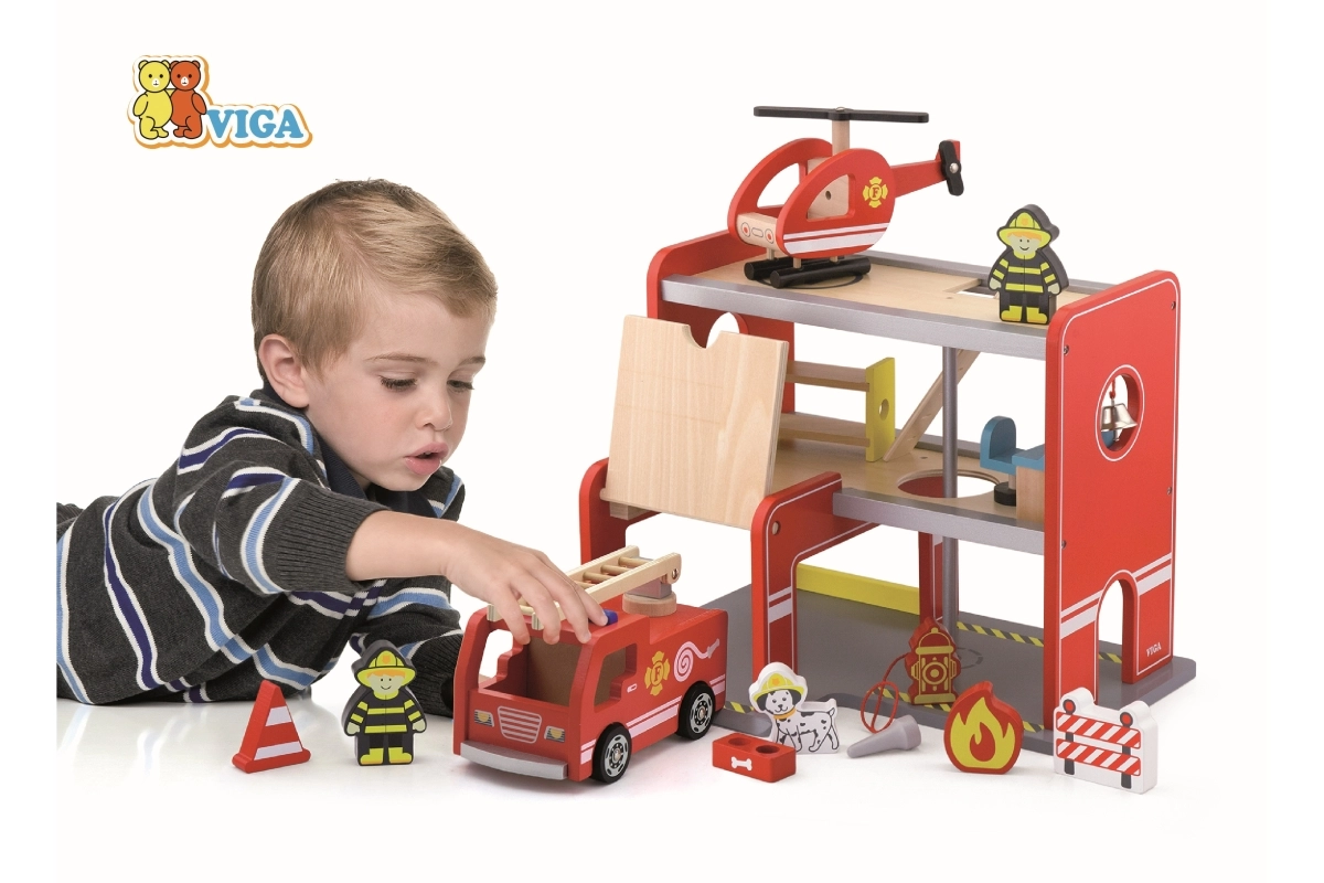 Dřevěná hasičská stanice Viga je kompletní herní set s více patry, který podporuje rolové hraní, rozvoj jemné motoriky a představivosti. Děti mohou vyjíždět z garáže s autem, přistávat s vrtulníkem na horní ploše a sklouznout se rourou přímo k zásahu. Barevné detaily a kvalitní dřevěná konstrukce zajišťují atraktivní vzhled i odolnost při každodenním používání.
