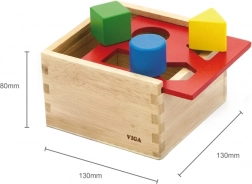 Tato kvalitní dřevěná vkládačka nabízí dětem bezpečný a zábavný způsob, jak se učit. Barevné tvary se vkládají do odpovídajících otvorů, čímž se rozvíjí koordinace oko–ruka a trpělivost. Kompaktní rozměry cca 13 × 13 × 8 cm z ní dělají skvělou hračku do dětského pokoje i na cesty.