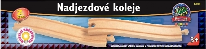 Nadjezdové koleje MAXIM (2 ks) pro dřevěné vláčkodráhy. Vytvořte přemostění, stoupání a sjezdy. Kompatibilní, zábavné a vhodné od 3 let.