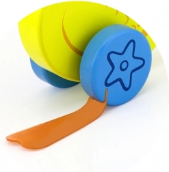 Hračka stimuluje dětskou fantazii a kreativitu prostřednictvím barevných prvků a interaktivních částí.