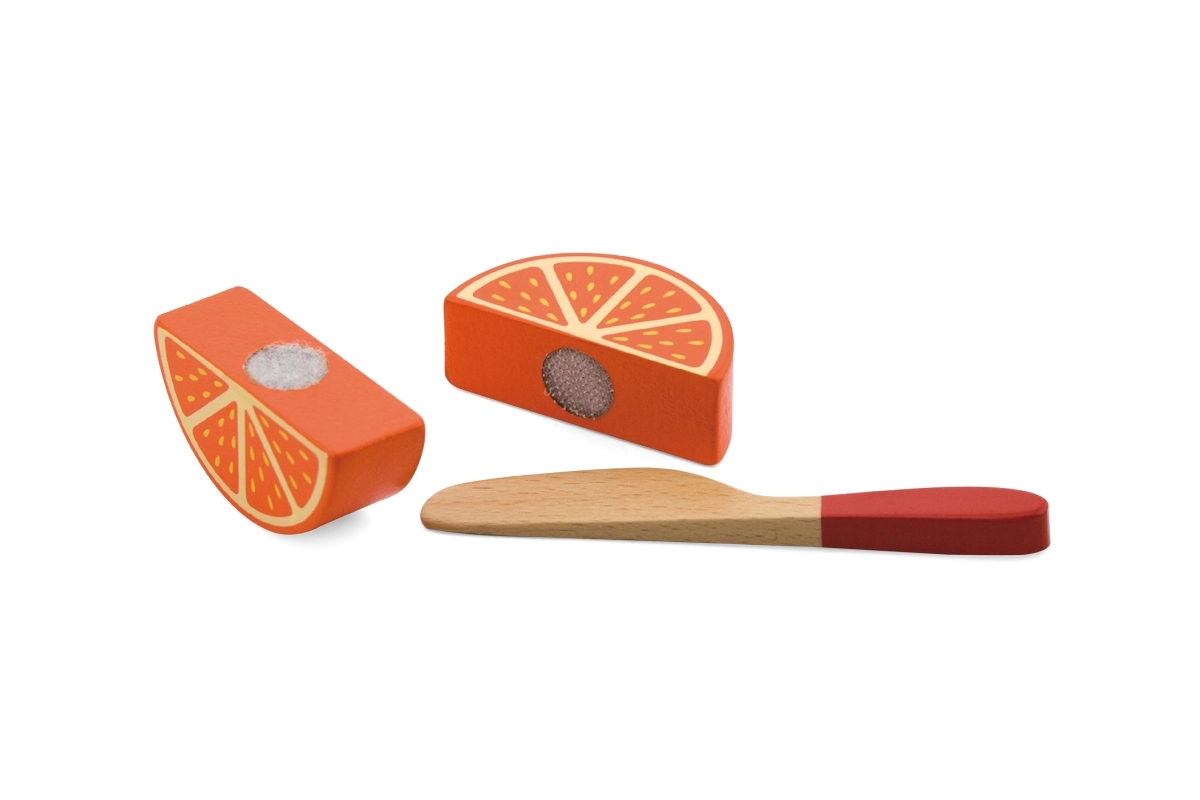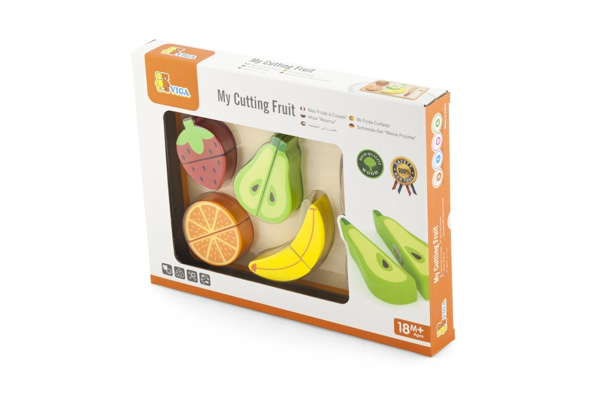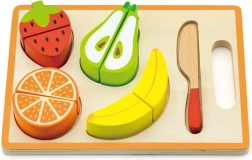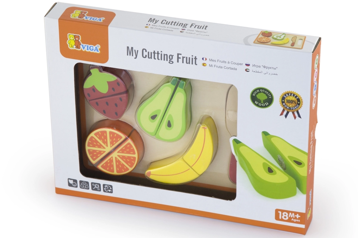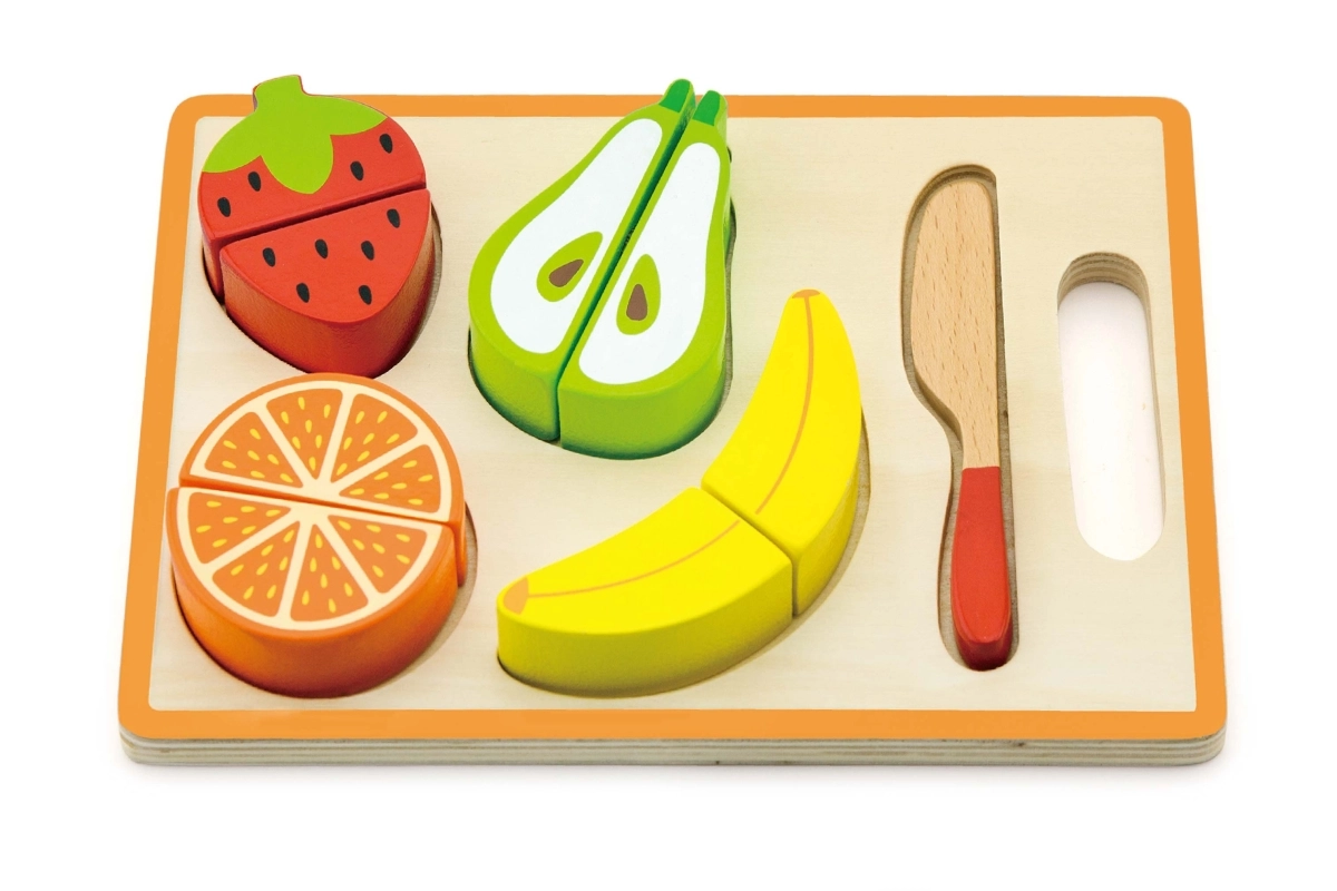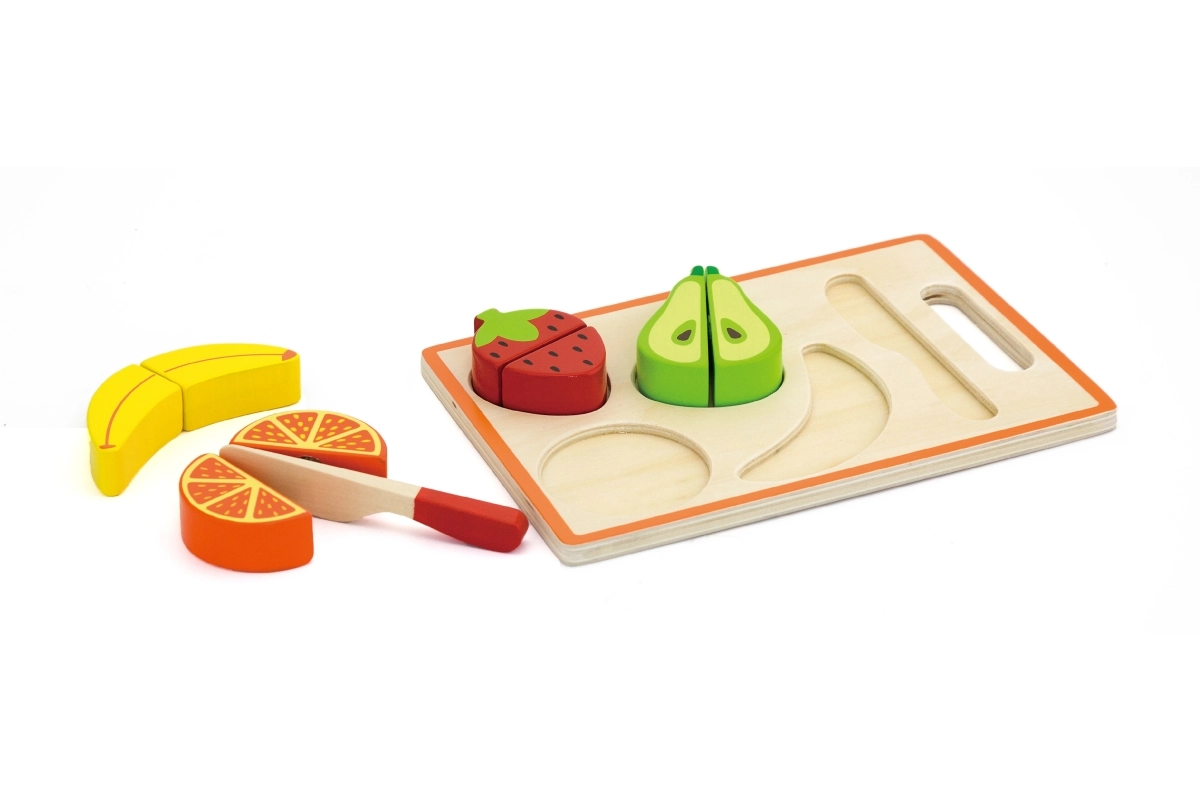 Tato kvalitní dřevěná sada nabízí bezpečnou hru na vaření: jednotlivé kousky ovoce jsou spojeny suchým zipem, díky čemuž je mohou děti opakovaně „krájet“ a znovu spojovat. Díky realistickému provedení se děti učí poznávat tvary a barvy, procvičují úchop a koordinaci a rozvíjejí fantazii při hraní na kuchaře.