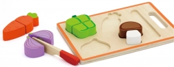 S tímto dřevěným setem na krájení zeleniny mohou děti napodobovat vaření ve své vlastní kuchyni. Obsahuje pestrou řadu dřevěných zeleninových kusů, krájecí prkénko a nůž, což umožňuje bezpečné a zábavné krájení. Vhodný pro děti od 18 měsíců, tento set podporuje rozvoj motorických dovedností.
