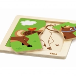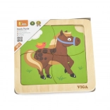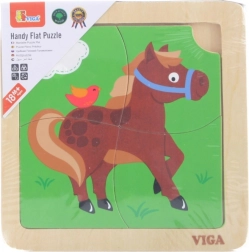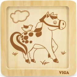 Roztomilé dřevěné puzzle s motivem koně potěší nejmenší děti od 18 měsíců. Díky pouze 4 velkým dílkům, pevné dřevěné základně a jasným barvám se děti učí skládat obrázek snadno a s radostí, přičemž si rozvíjejí jemnou motoriku, koordinaci oko–ruka a tvarové vnímání.