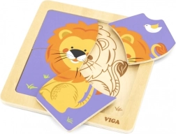 Toto kvalitní dřevěné puzzle s veselým obrázkem lva je navrženo pro malé ručičky. Díky čtyřem robustním dílkům s hladkými hranami se děti snadno učí přiřazovat tvary a procvičují trpělivost i soustředění. Praktická dřevěná základna drží dílky na místě a usnadňuje skládání.