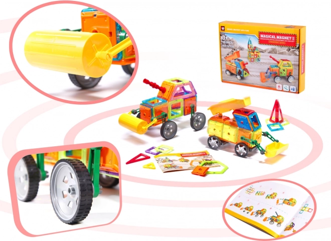 Získejte spolehlivou a kreativní zábavu pro vaši ratolest s různorodou sadou magnetických dílků, která navíc zahrnuje kola, spojky a samolepky k dosažení unikátních výsledků.