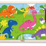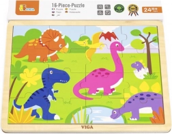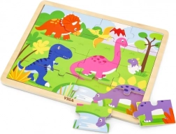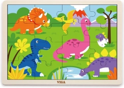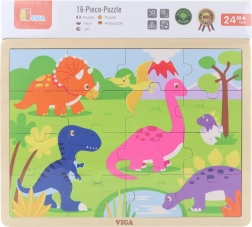 Objevte kvalitní VIGA dřevěné puzzle s dinosaury, které dětem nabídne první radost ze skládání. 16 dílků trénuje jemnou motoriku, koordinaci oko–ruka i logické myšlení. Díly můžete vkládat na dřevěnou desku s rámečkem nebo skládat obrázek i bez rámečku. Rozměr složeného puzzle je cca 27,5 × 20 cm, vhodné od 24 měsíců.