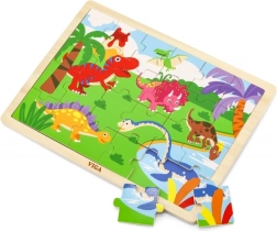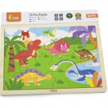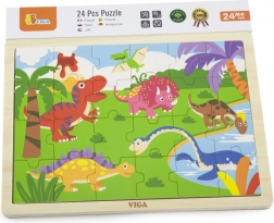 Dřevěné puzzle s roztomilým motivem dinosaurů potěší všechny malé nadšence do pravěku. Díky 24 dílkům jsou puzzle skvělou volbou pro první samostatné skládání, rozvoj koordinace oko–ruka i trpělivosti. Kvalitní zpracování a hladké hrany zajišťují bezpečnou a příjemnou hru.