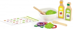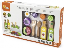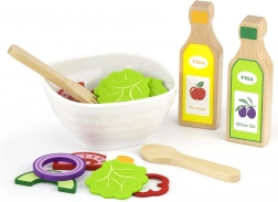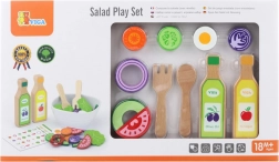 Tato kvalitní dřevěná salátová sada přináší dětem realistickou kuchyňskou zábavu. Díky bohaté výbavě si mohou malí kuchaři připravit vlastní salát, míchat suroviny v misce a servírovat pomocí příboru. Hra podporuje zdravé návyky a přirozeně učí rozpoznávat jednotlivé druhy zeleniny.