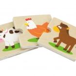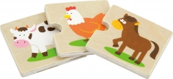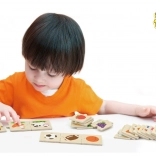 Každý dílek je z pevného dřeva s hladkými hranami a výraznými, barevnými ilustracemi, které podporují vizuální vnímání a motivují k dalšímu objevování. Set je vhodný pro domácí hraní i mateřské školy – skvěle se hodí k aktivitám typu třídění, pojmenovávání a společného řešení úkolů.