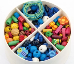 Sada obsahuje dřevěný box s přihrádkami, ideální pro uložení korálků a šňůrek.