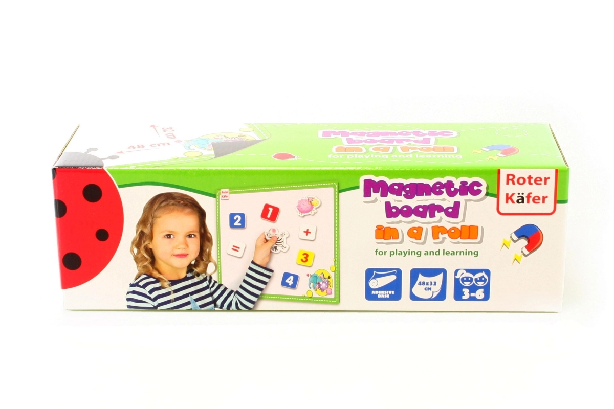 Tabuli snadno přemístíte nebo srolujete a uložíte. Je ideální pro domácí učení, dětský pokoj i cestování. Rozměr tabule cca 48 × 32 cm, kompaktní balení cca 33 × 10 cm. Magnety nejsou součástí.