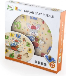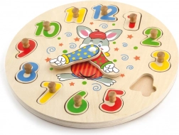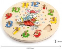 Tyto dřevěné hodiny kombinují puzzle vkládačku s učením času. Barevné očíslované dílky s praktickými úchyty skvěle padnou do malých dětských rukou a pomáhají s rozpoznáváním čísel 1–12. Při skládání si děti trénují trpělivost, koordinaci oko–ruka i vnímání tvarů a barev.
