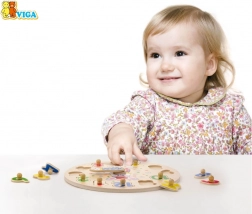 Každý dílek má dřevěný knoflík pro pohodlné uchopení. Děti si při skládání procvičují jemnou motoriku a koordinaci oka a ruky.