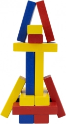 Pevné dřevěné kostky v sytých barvách odolají častému hraní a dobře padnou do ruky – pro pohodlné a příjemné stavění i vyjímání.