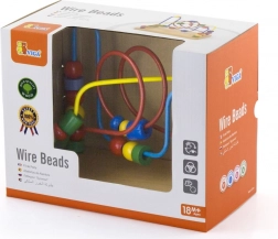 Barevné korálky na křivolakých drahách motivují děti k posouvání a třídění, čímž rozvíjejí úchop, koordinaci oko–ruka a trpělivost.