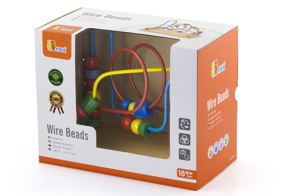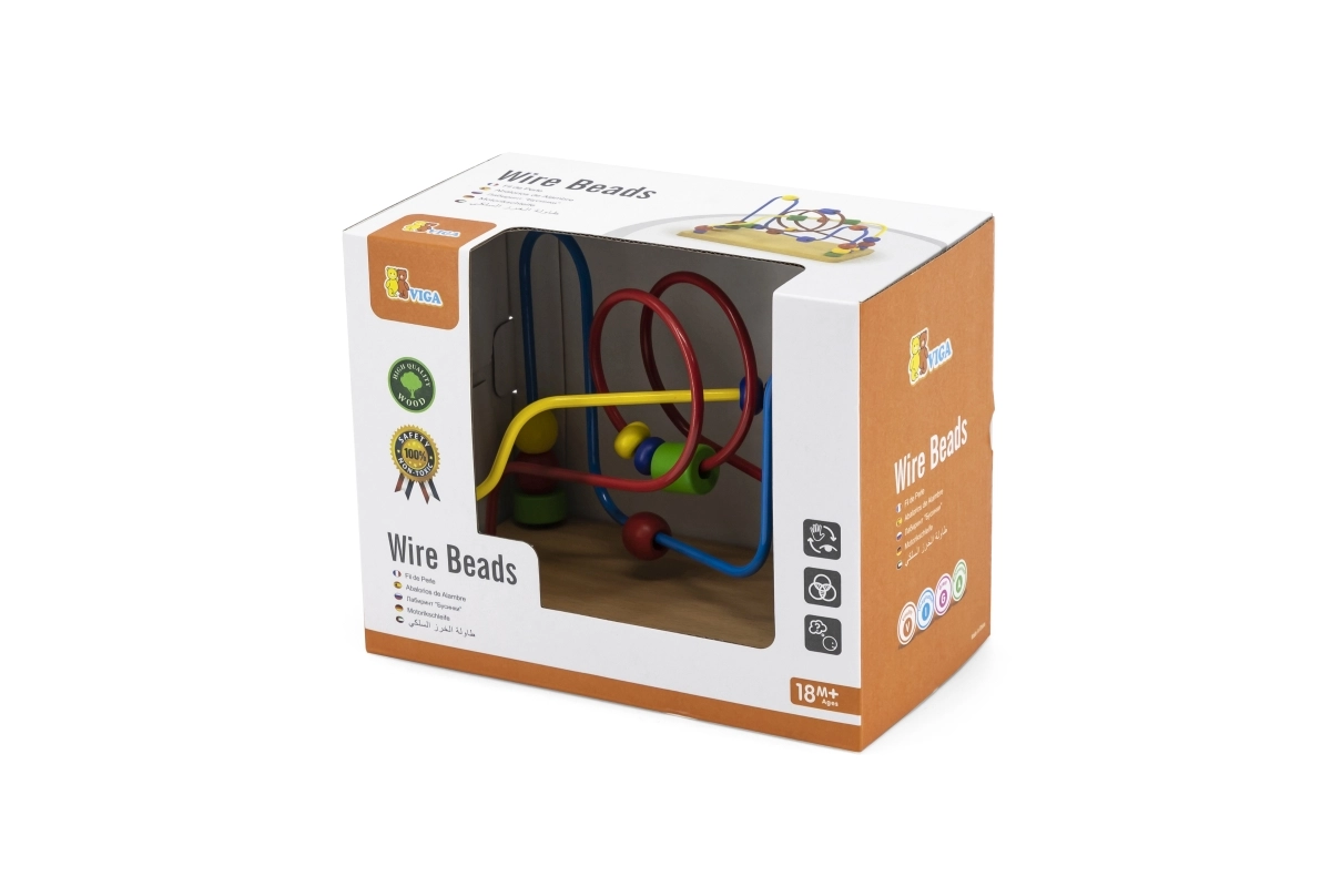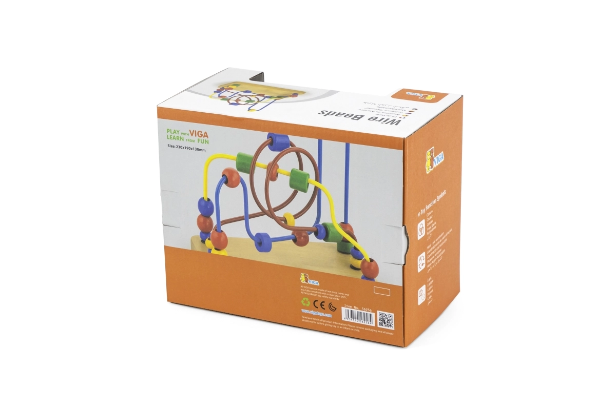 Tento kvalitní dřevěný labyrint s korálky je ideální pomůckou pro rozvoj dětských dovedností. Díky plynulému posouvání korálků po různě tvarovaných drátcích si děti trénují úchop, koordinaci pohybů a vizuální vnímání. Robustní dřevěná základna poskytuje stabilitu, zatímco hladké hrany a syté barvy podporují bezpečné a atraktivní hraní.
