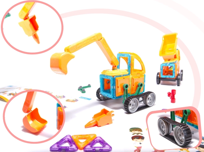 Silné magnety zajišťují snadné a pevné spojení dílů, což usnadňuje stavbu unikátních konstrukcí. Díky pestrým barvám je hračka navíc vizuálně atraktivní.
