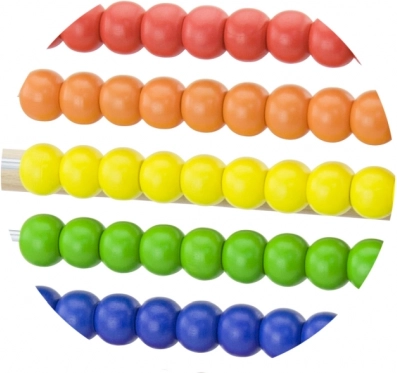 Deset řad výrazně barevných korálků podporuje vizuální vnímání, třídění a první početní úlohy.