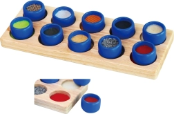 Dítě má za úkol podle pocitu na dotek najít odpovídající texturu a přiřadit válec do správného otvoru – bez použití zraku. Tím se trénují hmatové, vestibulární i proprioceptivní procesy, které jsou zásadní v předškolním věku. Pevné dřevěné provedení zajišťuje odolnost a dlouhou životnost.