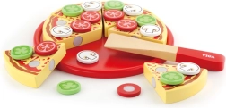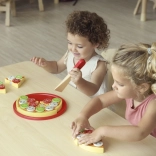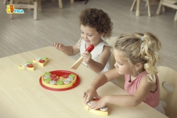 Pizza je rozdělena na dílky a doplněna špachtlí/nožíkem, takže děti mohou krájet a servírovat jako v opravdové pizzerii.