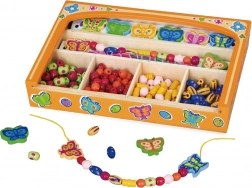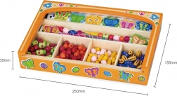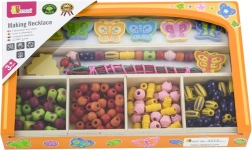 Tato bohatá sada dřevěných korálků nabízí pestrou paletu barev, tvarů a velikostí, díky nimž si děti snadno vytvoří vlastní náramky či náhrdelníky. Přehledné uložení v pevné dřevěné krabičce usnadňuje organizaci a opakované hraní.