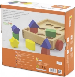 Dřevěná vkládačka - vozík nabízí dětem zábavnou a edukativní cestu ke zlepšení jemné motoriky. Součástí sady je vozík o rozměrech 24,5 x 22 x 7 cm a 9 různobarevných kostek v různých tvarech, které je potřeba správně vložit. Tento vozík děti motivuje ke hraní, zatímco se učí tvarové rozpoznávání.