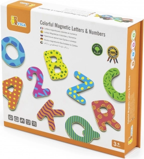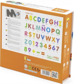 VIGA barevné magnetické písmenka a číslice – dřevěná sada 77 dílů