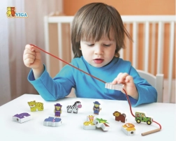 Navlékání kostek na provázek pomáhá dětem rozvíjet jemné motorické schopnosti a zlepšovat koordinaci pohybů.
