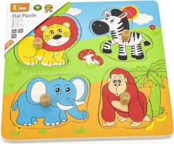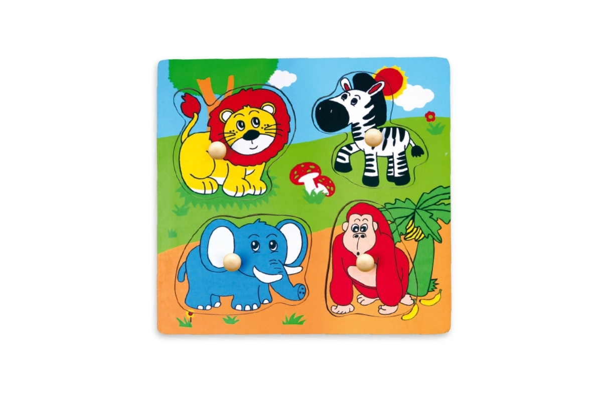 Objevte první puzzle pro nejmenší: dřevěná vkládačka se zvířátky ze safari s praktickými úchyty. Podporuje jemnou motoriku, koordinaci oko–ruka a rozpoznávání tvarů a zvířat. Barevné provedení a bezpečné zpracování potěší děti od 12 měsíců.