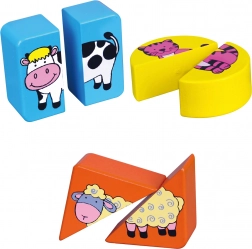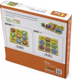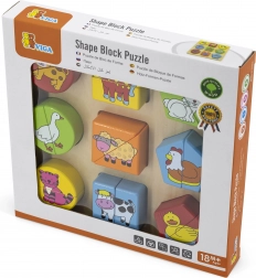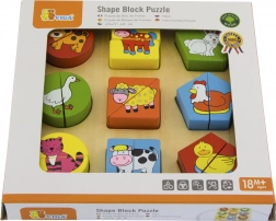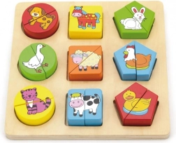 VIGA nabízí dřevěné vzdělávací puzzle s devíti barevnými dílky, z kterých si děti mohou sestavit obrázky různých zvířátek, jako například kravičky, kačenky a králíčka. Hra umožňuje rozvoj motorických dovedností a poznávání barev a tvarů. Díky bezpečným a netoxickým barvám jsou tyto puzzle ideální pro malé děti.