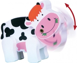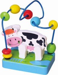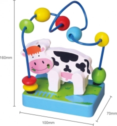Dřevěný labyrint s kravičkou přitahuje pozornost dětí díky svému pestrobarevnému designu a roztomilé kravičce.