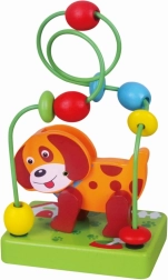 Labyrint má barevnou základnu s motivem pejska, což upoutá pozornost dětí a povzbudí je ke hře.