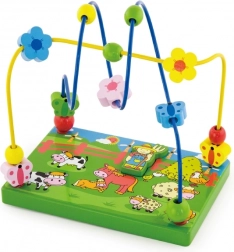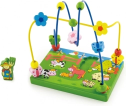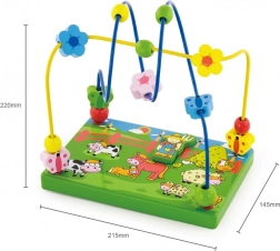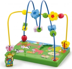 Objevte barevný dřevěný korálkový labyrint s farmářskou tématikou, který děti nadchne pohybem korálků po kovových drátcích i hrou s magnetickou figurkou. Stabilní dřevěná základna s ilustracemi z farmy podporuje představivost a zároveň učí děti soustředit se a koordinovat pohyby.