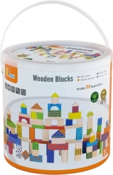 Dřevěné stavební kostky – 100 ks v kyblíku