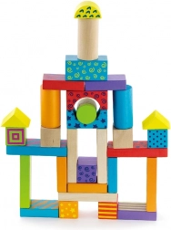 Tato nadčasová sada dřevěných kostek přináší dětem hodiny smysluplné zábavy. Díky 100 pestrobarevným dílkům různých tvarů mohou stavět věže, domy i celé městečko a přitom rozvíjet koordinaci oko–ruka, logické myšlení a trpělivost.