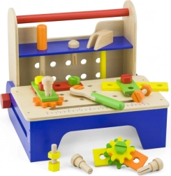Tato dřevěná šroubovací sada je ideální volbou pro první kutilské pokusy. Robustní dřevěná přepravka se během chvilky promění v stabilní ponk, na kterém mohou děti šroubovat, skládat a stavět vlastní výtvory. Barevné díly lákají k objevování a podporují koordinaci ruka-oko.
