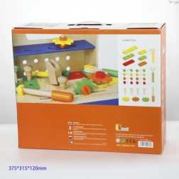 Objevte kreativní svět stavění s touto kvalitní dřevěnou sadou nářadí pro děti od 3 let. V praktické přepravce, která se snadno promění v ponk, najdete vše potřebné pro malé kutily – šroubovák, kladívko, klíč, šrouby, matice i destičky. Hra rozvíjí jemnou motoriku, logické myšlení a kreativitu a přináší hodiny zábavy bez obrazovek.