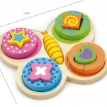 Skládání větších, dobře uchopitelných dílků rozvíjí přesnost pohybů a koordinaci oko–ruka už od raného věku.