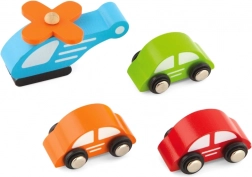 Součástí balení jsou 3 dřevěná autíčka a helikoptéra, takže můžete začít hrát hned po vybalení. Bezpečné zaoblené tvary a odolné materiály jsou ideální pro každodenní hraní.