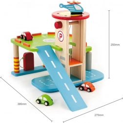 Tato kvalitní dřevěná garáž nabízí více úrovní parkování, přistávací plochu pro helikoptéru a praktický výtah pro snadné přesouvání autíček mezi patry. Díky promyšlenému designu s dráhami, značkami a doplňky si děti procvičí koordinaci pohybů a rozvinou svou představivost.