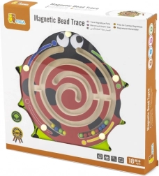 Toto kvalitní dřevěné magnetické bludiště beruška nabízí dětem barevný svět objevování. Přiloženým magnetickým perem posouvají kuličky po promyšlených drahách, čímž si přirozeně posilují úchop, trénují koordinaci oko–ruka a zlepšují koncentraci. Pevná dřevěná konstrukce a uzavřený design zajišťují bezpečnou hru bez volných dílků.