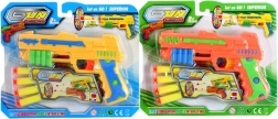 Plastová pistole pro děti s pěnovými náboji a papírovým terčem představuje ideální zábavu pro malé střelce.