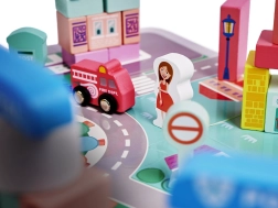 Součástí stavebnice jsou různé budovy jako banka, nemocnice, policejní stanice a pošta. Nechte děti tvořit a hrát si jako skuteční architekti.