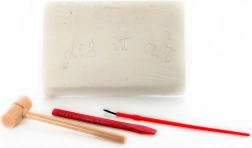 - Kompletní balení: hliněný kvádr, mince/nugety, štětec, dláto/špachtle a kladívko