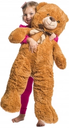Medvídek má celkovou délku přibližně 90 cm (cca 90 × 40 × 20 cm) a v sedící poloze měří asi 55 cm. Díky kvalitnímu zpracování si udrží tvar a stane se oblíbeným kamarádem pro každodenní hraní i relax.