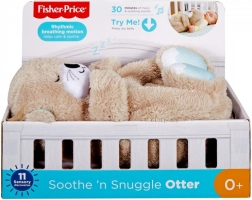 Plyšová vydra Soothe 'n Snuggle je navržená pro klidný spánek miminek. Rytmické zvedání a klesání bříška napodobuje přirozené dýchání, které děti intuitivně uklidňuje. K tomu vydra nabízí až 30 minut melodií, zvuk tlukotu srdce, bílý šum i jemné pochrupování a nechá se přizpůsobit aktuální náladě miminka.