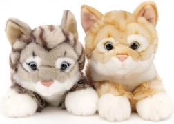 Tato ležící plyšová kočka přináší dětem i dospělým spoustu radosti a pohodlí. Jemný, nadýchaný materiál je příjemný na dotek a díky kvalitnímu zpracování si hračku zamilujete na první pohlazení. Realistické detaily, jako jsou pruhované zbarvení, bílé tlapky a roztomilý čumáček, dodávají kočičce autentický vzhled.