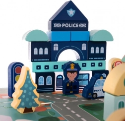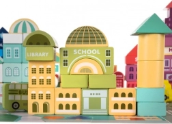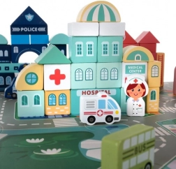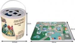 Dřevěné bloky Kruzzel jsou příležitostí pro děti rozvíjet své kreativní schopnosti a přitom se naučit něco o městském prostředí. Součástí setu je barevná hrací podložka znázorňující město s cestami a budovami, která poskytuje fantastické možnosti pro imaginativní hru.