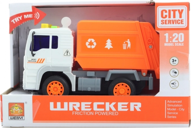 Popelářské auto na baterie se světly a zvuky. Kompaktní rozměry, baterie součástí balení. Ideální hračka pro děti od 3 let.